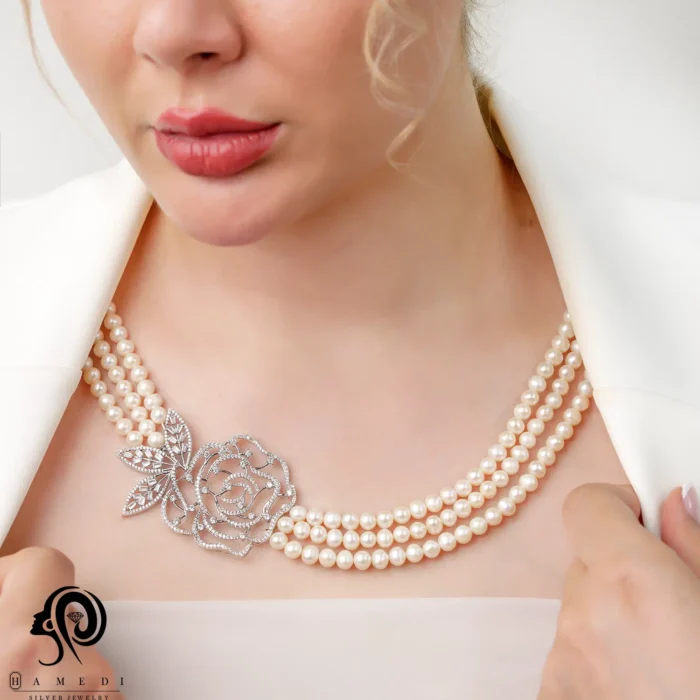 گردنبند مروارید نقره زنانه سه شطه ای مدل KEY 10