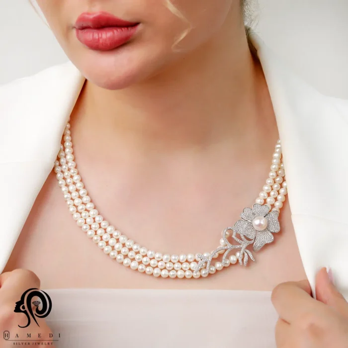 گردنبند مروارید نقره زنانه سه شطه ای مدل KEY 9