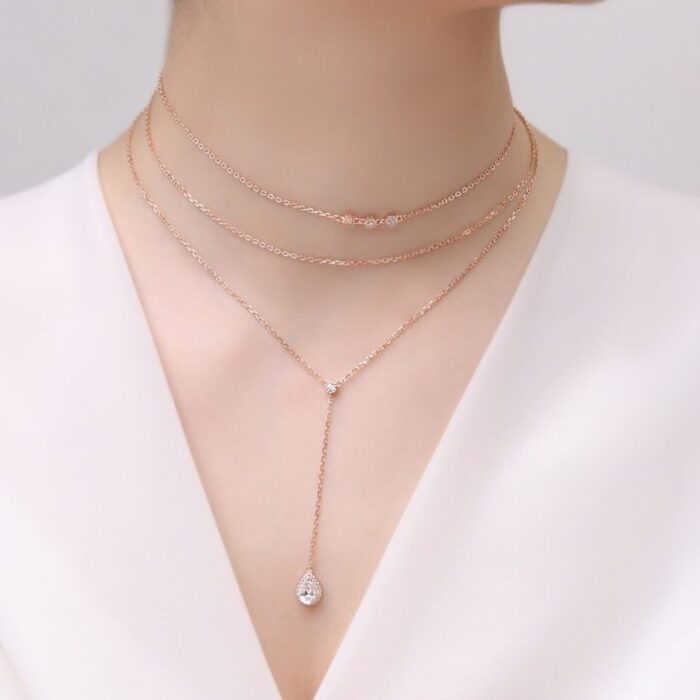 گردنبند نقره زنانه نگین اشکی شیک مدل KEC R6 R
