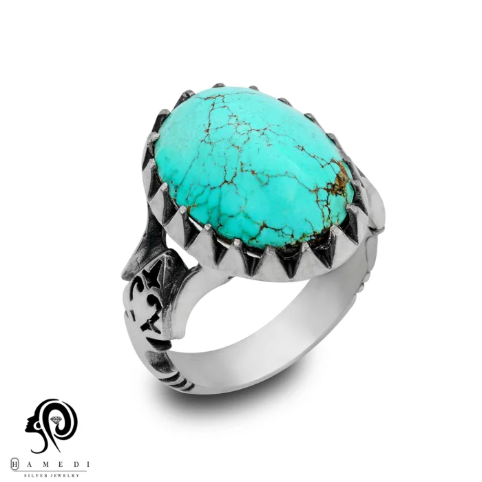 انگشتر فیروزه مردانه نقره اصل مدل RIM FI17