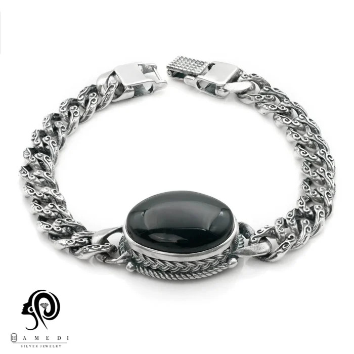 دستبند نقره مردانه سنگ عقیق مدل BIM AY1