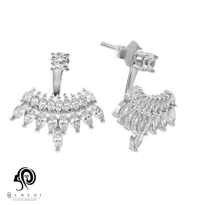 گوشواره قایقی نقره زنانه دو تیکه ای مدل EE K2